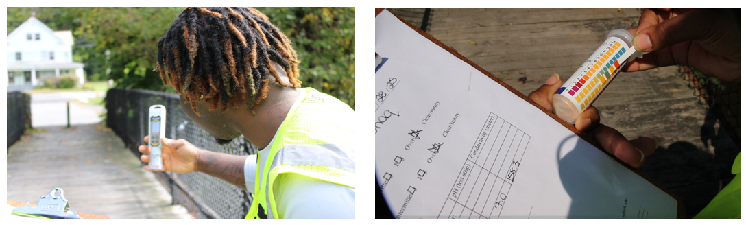 Connecticut River Conservancy staff partner with X-Cel Conservation Corps to train our crew members on how to collect water samples and test the water samples for multiple parameters. We travel to five different rivers that are part of the Connecticut River watershed and crew members learn how to test and measure the temperature, pH and conductivity of the water samples. They also collect water samples to bring back to lab to be tested for nitrogen and e-Coli.
