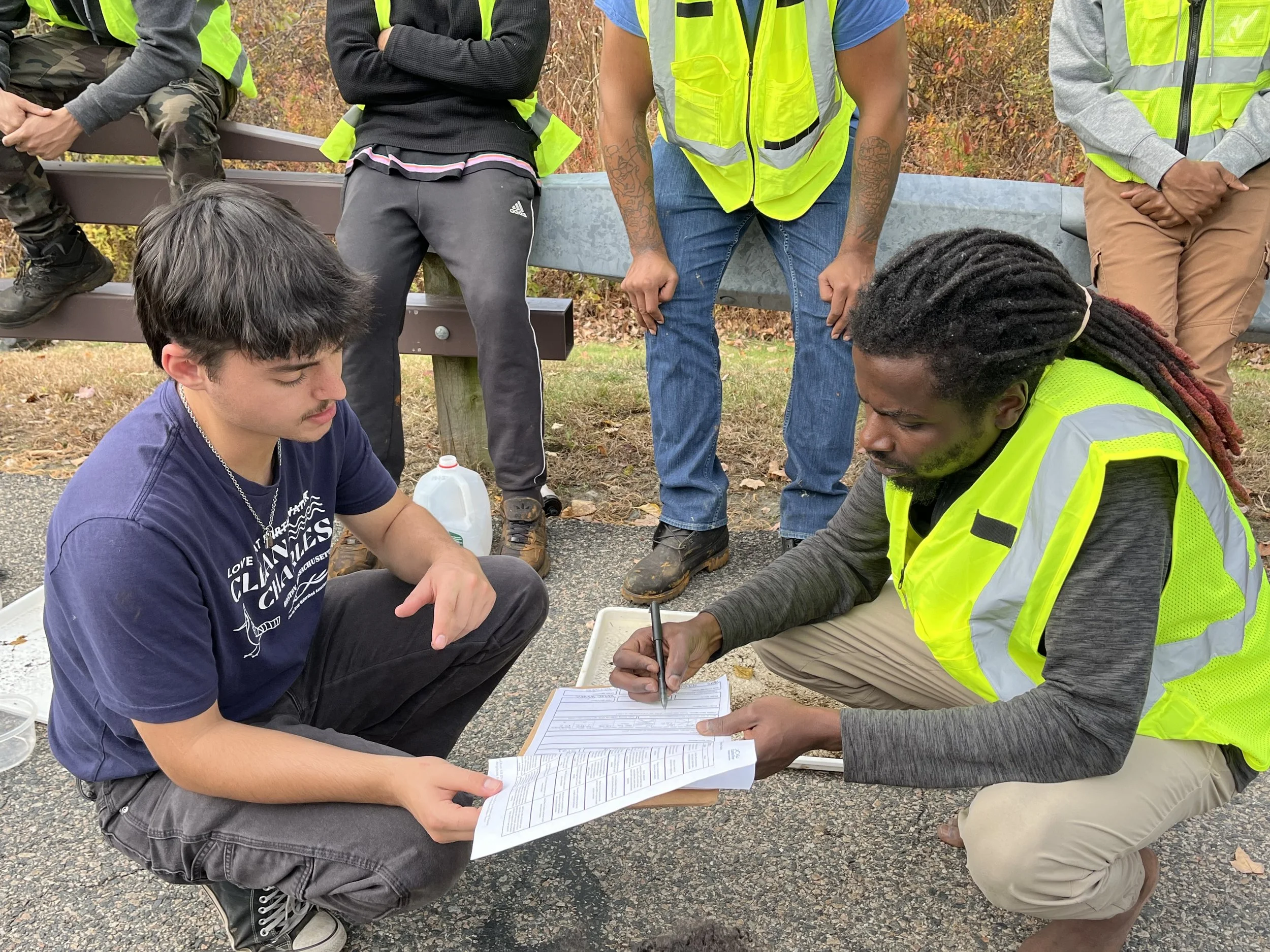 CRWA personnel train XCC crew members how to conduct habitat assessments, and the proper methods to conduct benthic macroinvertebrate sampling and how to identify the insects collected. Following the training, XCC members conduct habitat assessments and collect macroinvertebrates at streams within the Charles River watershed and then identify the insects collected in order to assess water quality in each of the Charles River tributaries sampled. Also, CRWA staff members train XCC crew members on the harmful impact stormwater run-off has on local waterways and how green infrastructure is used to reduce the amount of stormwater run-off that flows into the waterways. Following the training, XCC crew members get further training with CRWA and Horsley Witten staff members outdoors at a green infrastructure installation and complete maintenance of the green infrastructure installation.