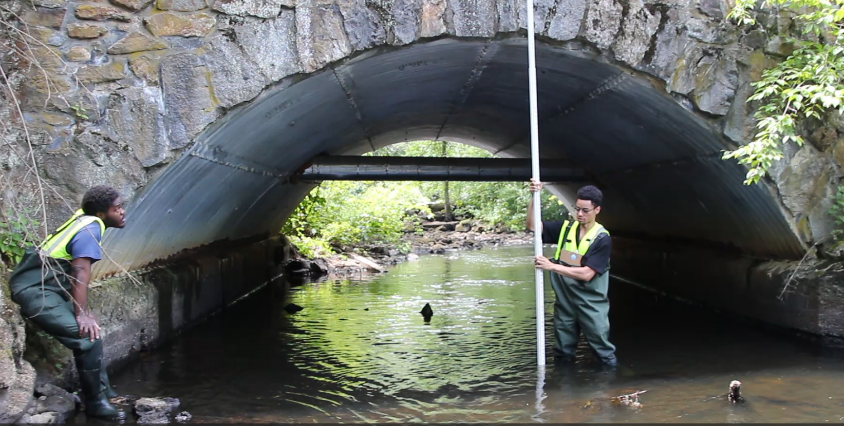 OARS Three Rivers staff train XCC crew members on how to conduct culvert assessments. This is important work to manage stormwater and ensure wildlife is able to safely migrate under roadways. This work also provides effective workforce development skills as our crew members have to work together in teams to accurately take measurements, record data and make assessments of stream water flow and culvert quality.